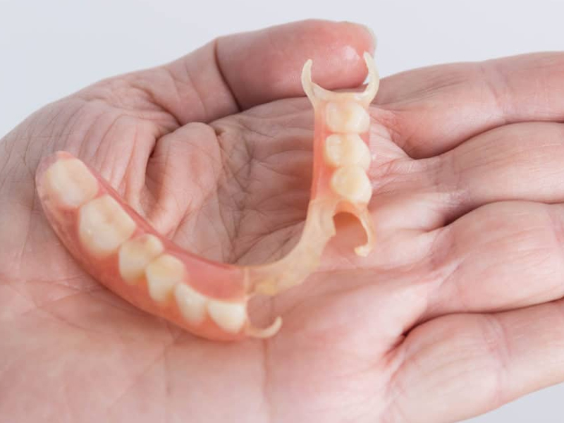 Partial Dentures: Partial dentures are used when some natural teeth remain in the mouth. They fill the gaps left by missing teeth and are held in place by clasps attached to the remaining natural teeth.